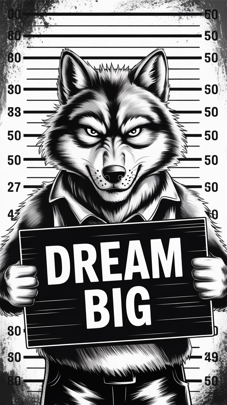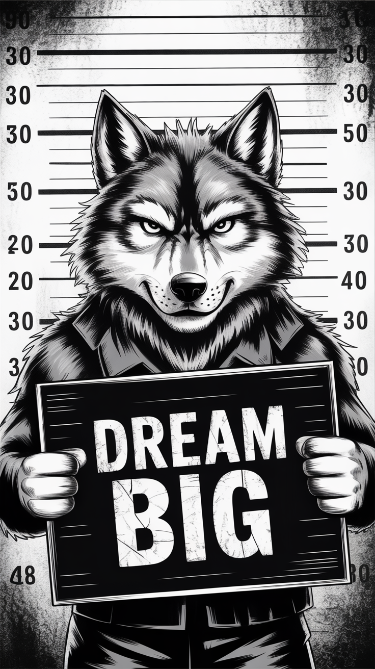 Rebellious Wolf in Gritty Mugshot Art